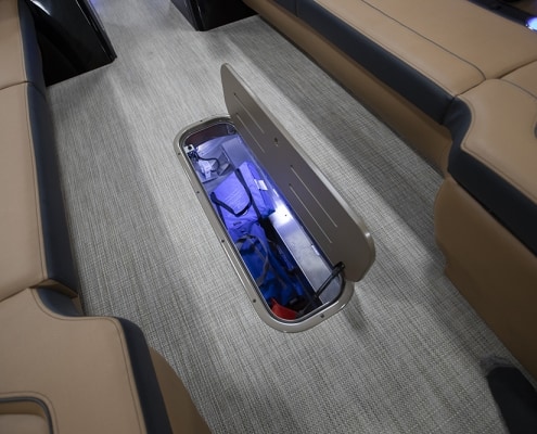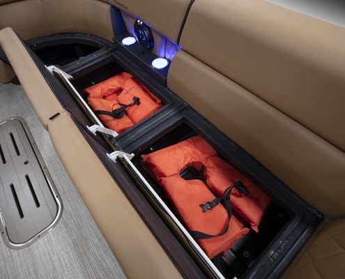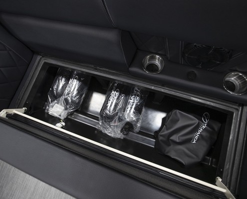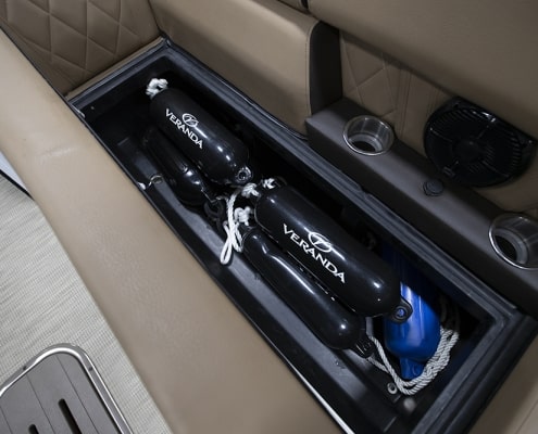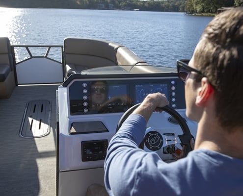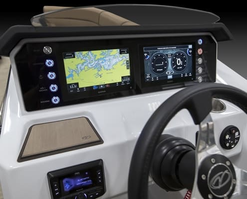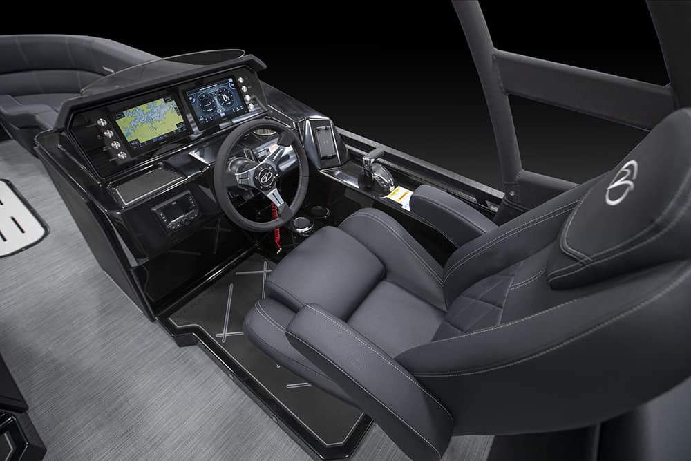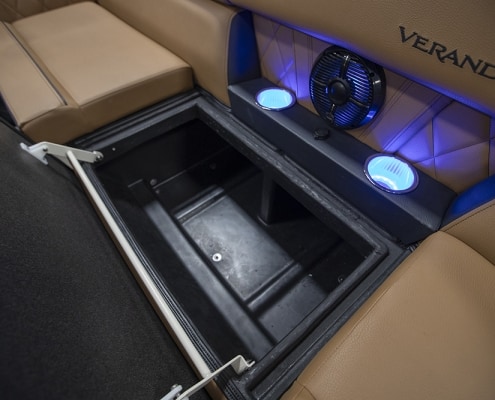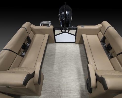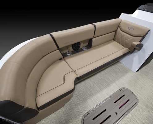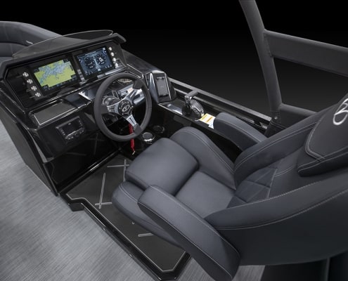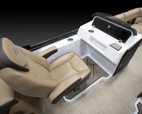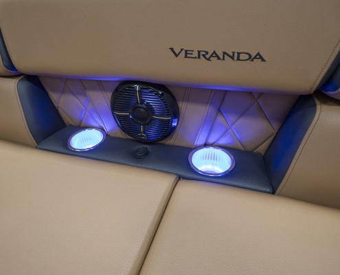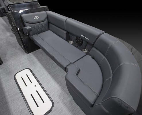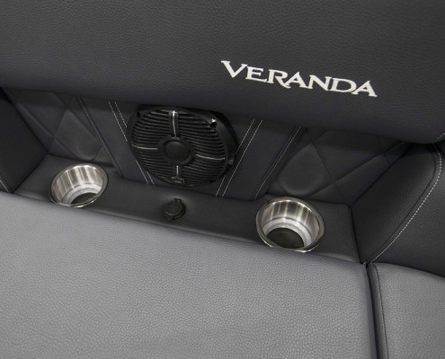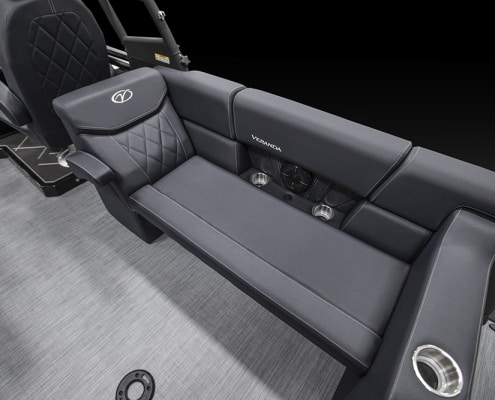 You and your co-pilot will experience double doses of pleasure when sitting on the “High Rise” hydraulic helm chairs of the Vertex Series Premium Dual Console Rear Chaise (DCRC). Great things come in pairs, like dual forward-facing chaise lounges, dual consoles at midship with a glove box for storing your vitals, and dual rear-facing chaise lounges in the aft. The Wet Sounds manufacturer-tuned Bluetooth 360-degree audio solution provides dialed-in entertainment and 360-degree music coverage to keep you rocking whether you are on the deck, dock, or shore. Every Veranda we assemble comes standard with industry-leading 0.100-gauge round tubes because it is the most durable shape aluminum can be formed into. Our exclusive partnership with Yamaha perfectly complements the innovative log design and Patented All-Aluminum All-Welded Interlocking Deck System it powers. Choose the Vertex Series Premium DCRC if you are ready to embrace the most durable foundation in the industry and a lifetime of trouble-free fun!