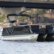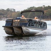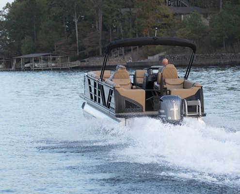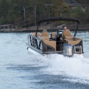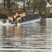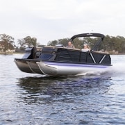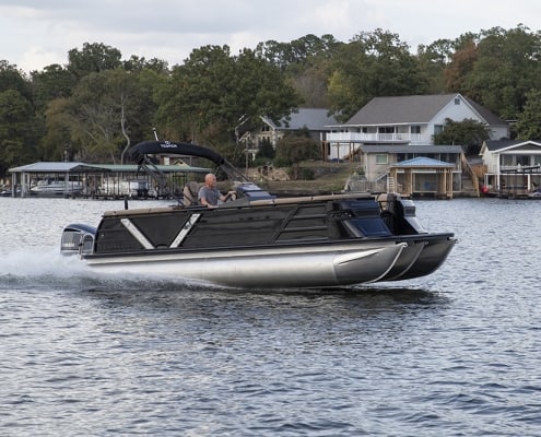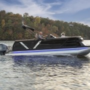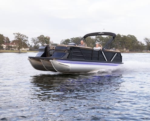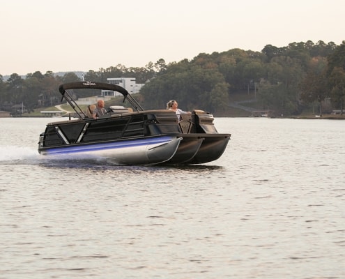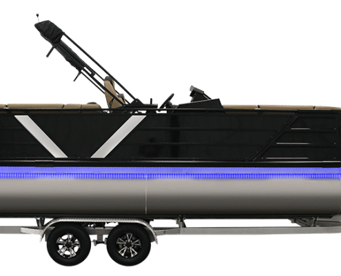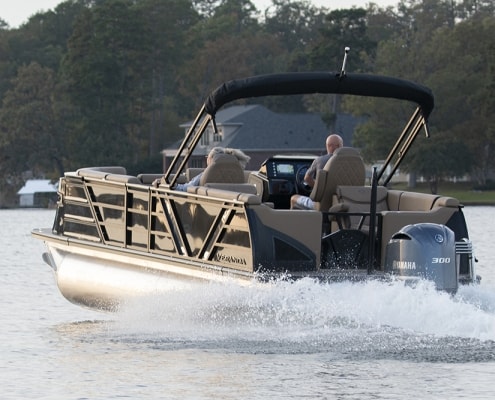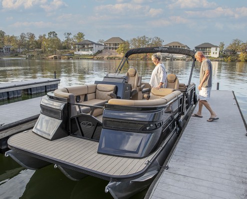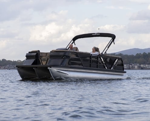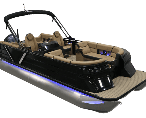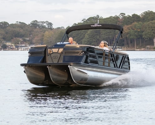 The Veranda Luxury Pontoons 2025 Vertex Series Premium RC is available as a tri-toon in three sizes: