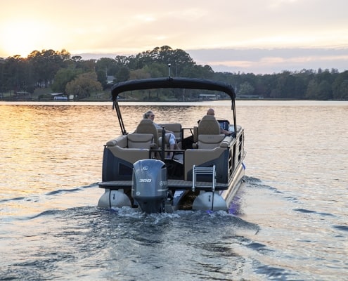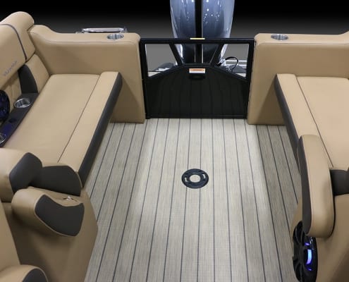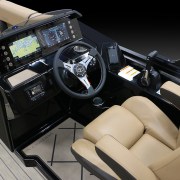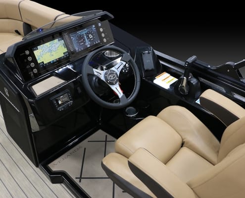 The Vertex Series Premium Rear Chaise (RC) provides passengers with two forward-facing and two rear-facing chaise lounges that offer the perfect view for sightseeing, taking a siesta, or admiring a beautiful sunset. You cannot help but admire the sleek design of the dual 9-inch flush-mount Garmin multi-function displays on the helm. The edge-to-edge clarity of this navigational duo includes digital switching and push-button redundancy to access more information even faster. Other best-in-class features on the all-new Vertex Premium RC include SeaDek, Shadow-Caster light controls, and Spradling vinyl flooring enclosed with custom sculpted fiberglass bow caps and high-density composite aft caps. For increased performance, you will appreciate the T-H Marine Supplies, U Flex hydraulic steering, and Yamaha reliability. Vertex Premium RC customers will relish the confidence of knowing they have chosen the finest deck system in the industry, with exquisite best-in-class components from bow to stern.