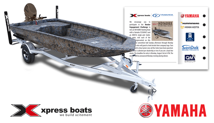We will be giving away an HD16DBX hunting boat to one lucky dealer in attendance!