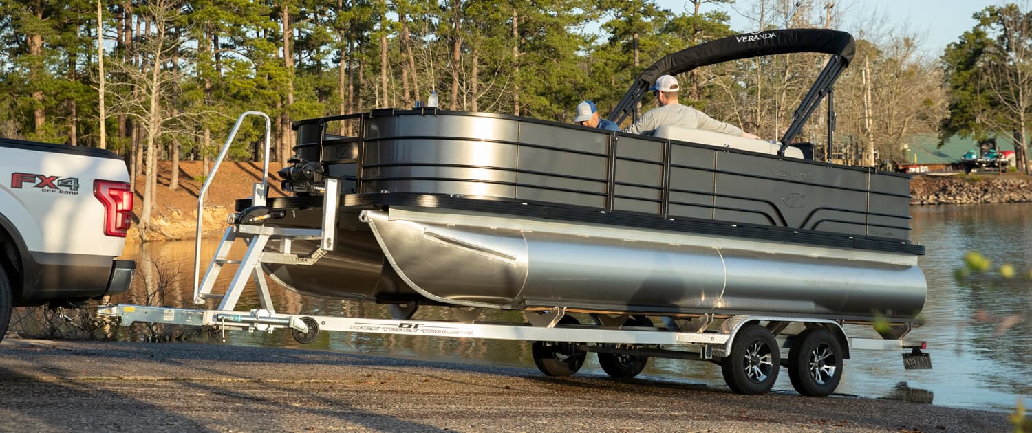 Veranda Luxury Pontoons proudly offers an industry superior all-aluminum, all-welded trailer. Backtrack® Trailers are as attractive as they are rugged. Each trailer is custom built to cradle your Veranda with treated bunks to ensure that your pontoon is transported safely and securely. To customize your trailer you can add optional features like a spare tire with mount, brakes on the second axle of the tandem, and aluminum wheels. LED lighting and composite bunk covers are standard. Backtrack Trailers are designed exclusively for Veranda Luxury Pontoons and are second to none in quality, craftsmanship, and durability.