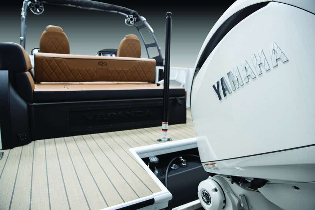 Your passengers will vie for the coveted spot beside the captain on the Vertex Series Premium Dual Console Versa Lounge (DCVL). The passenger-side glove box is ideal for storing personal items, and who would not appreciate a refrigerated cup holder on a hot summer day? In addition to the three-position Versa Lounge seating, you will be amazed at the standard and premium expertly appointed color schemes used across the marine seating, fiberglass bow caps, high-density composite aft caps, aluminum panels, and powder-coated rails. Veranda has exclusively chosen Yamaha Outboards to complement our entire lineup, including the Vertex Series. This partnership ensures we have the necessary motors in stock on-site to get the boats rigged, wrapped, shipped to our dealers, and into the hands of our valued customers fast. Yamaha provides you with the turnkey reliability, fuel efficiency, and outstanding performance you deserve. You will be the envy of the lake when you choose the Vertex Series Premium Dual Console Versa Lounge!