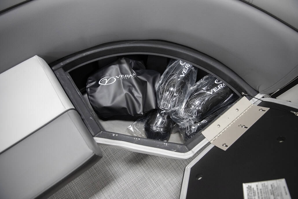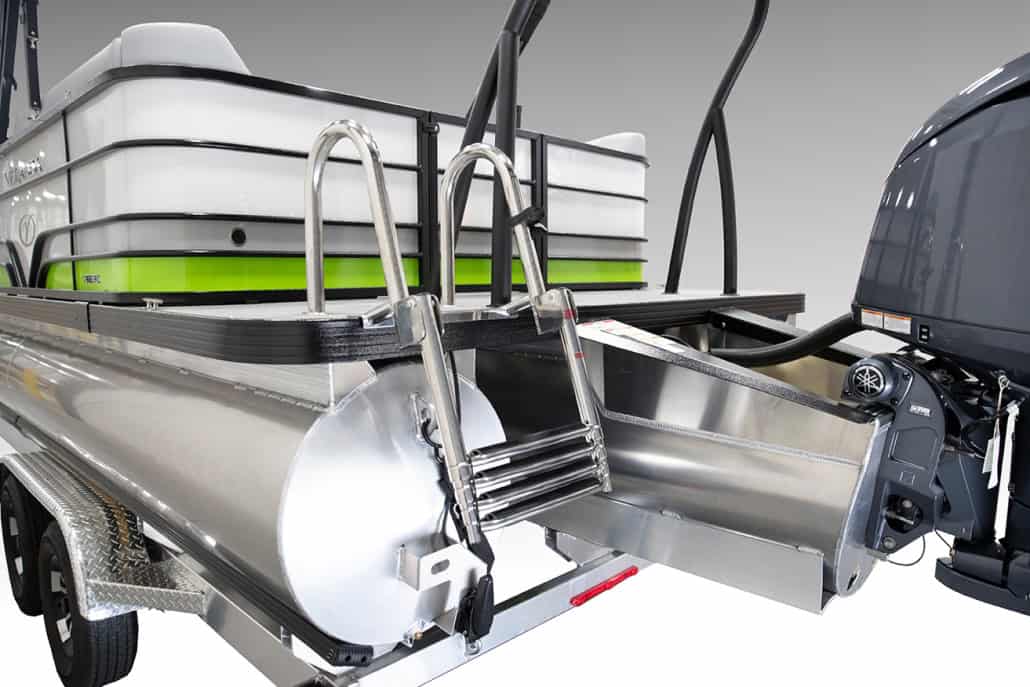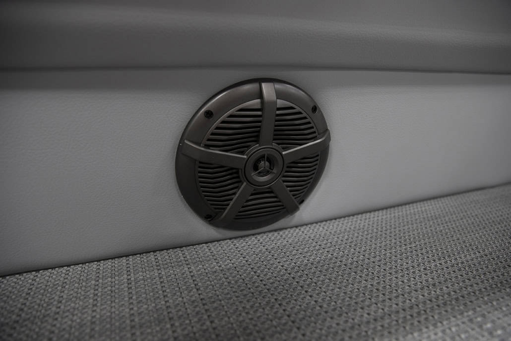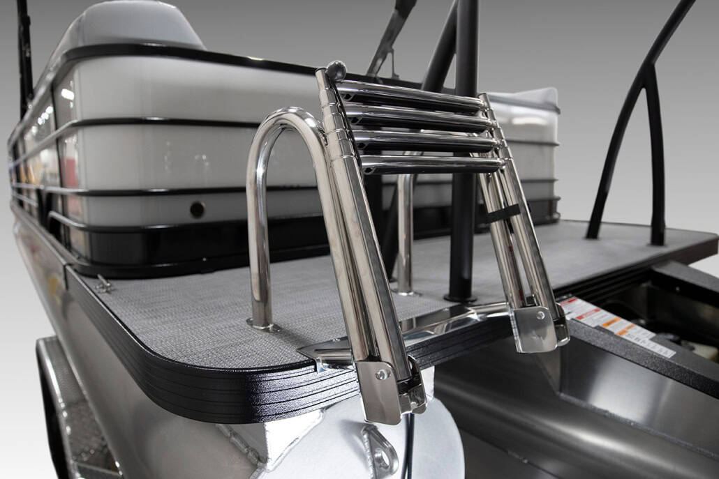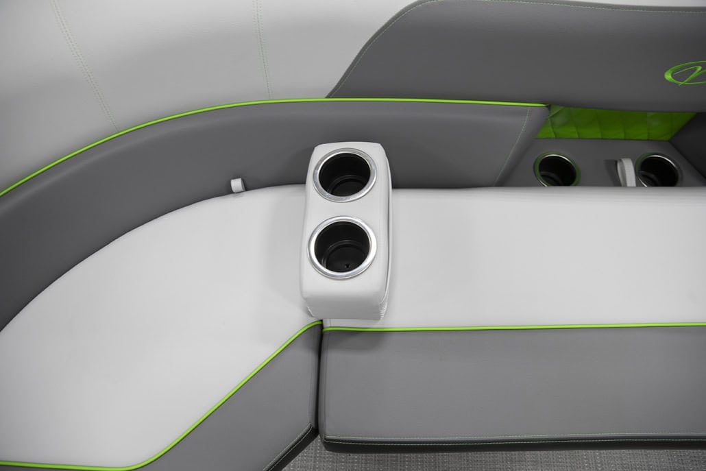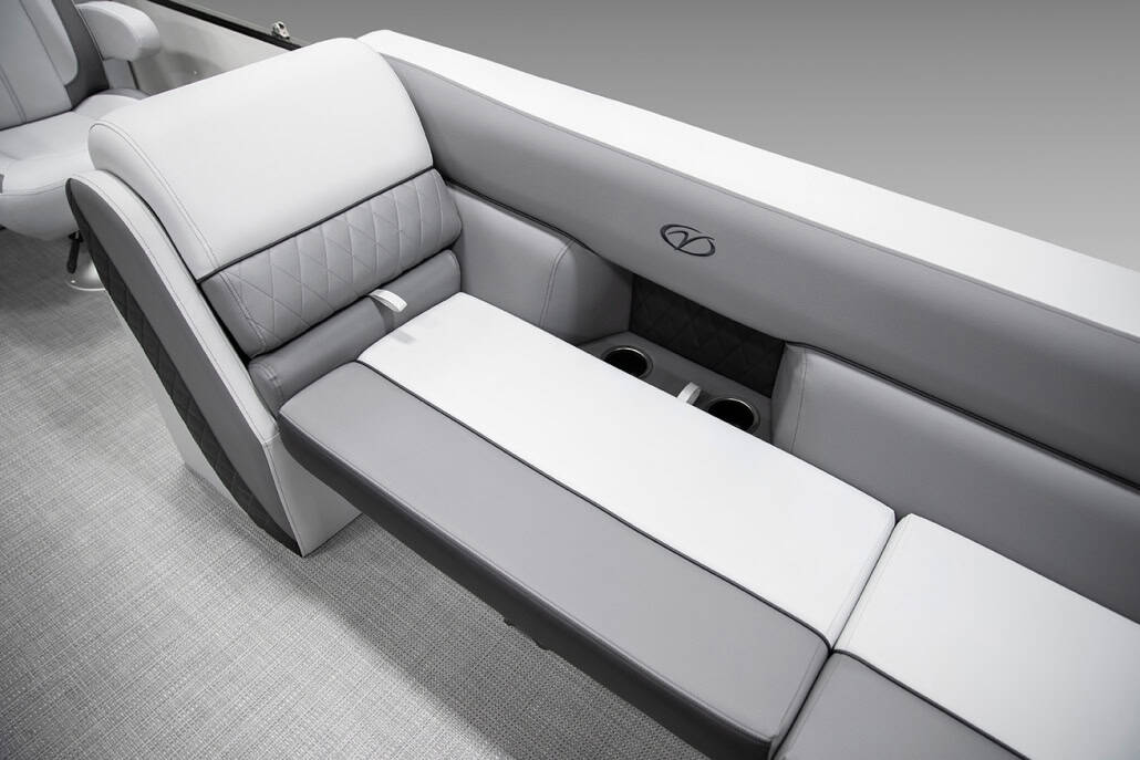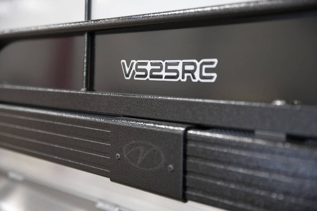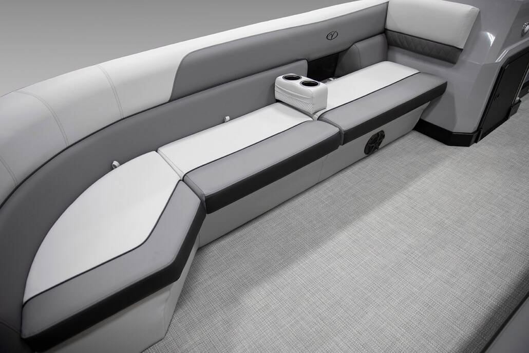 The saying “good things come in threes” hits the bullseye with the Vista Sport. Customers can choose from 20, 22, and 25-foot lengths and black, island green, or navy accent colors. A 25″ Triple-toon Performance Package comes standard and provides greater horsepower and performance. The all-new Vista Sport is ideal for water sports enthusiasts due to the hydraulic steering, tow bar, boarding ladder, and optional Extreme Tower Package. A bundle of luxury standard features will maximize your comfort and entertainment, including reclining chairs and four-corner couch seating in Dolphin Grey, an open storage area under the console for the cooler, a Kicker Bluetooth audio system with four 6.5″ Clarion speakers and an 8″ Bazooka subwoofer, and RGB controller with lighted cupholders at the helm. Captains will appreciate the black powder-coat aluminum and SeaDek-lined raised helm platform and courtesy light when navigating. The Veranda Vista Sport is your affordable and stylish passport to water sports excellence!