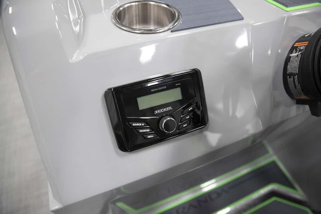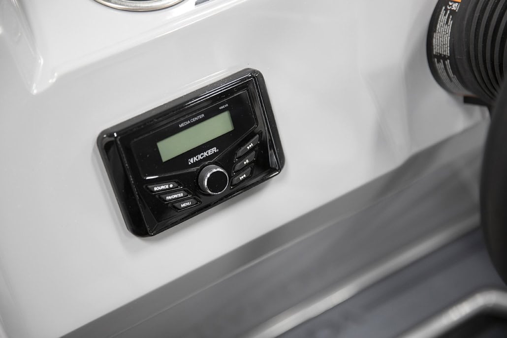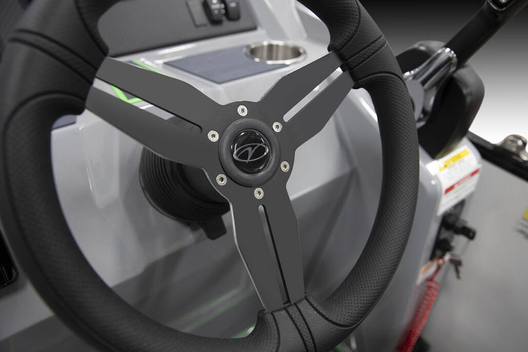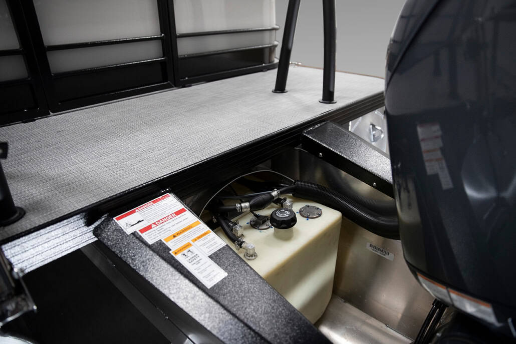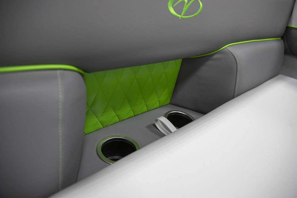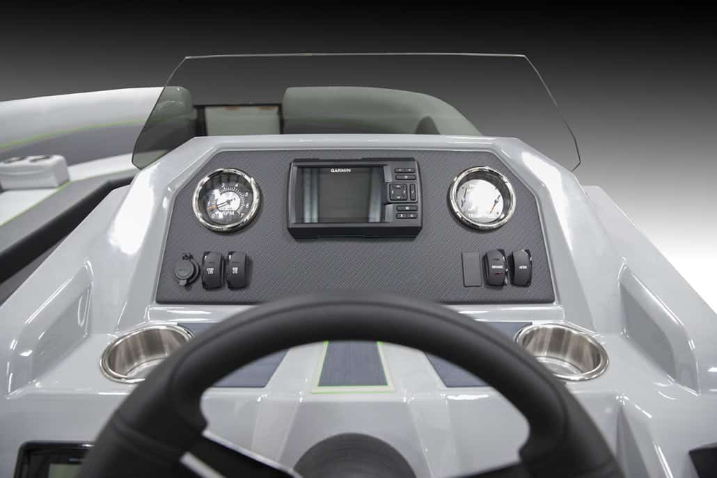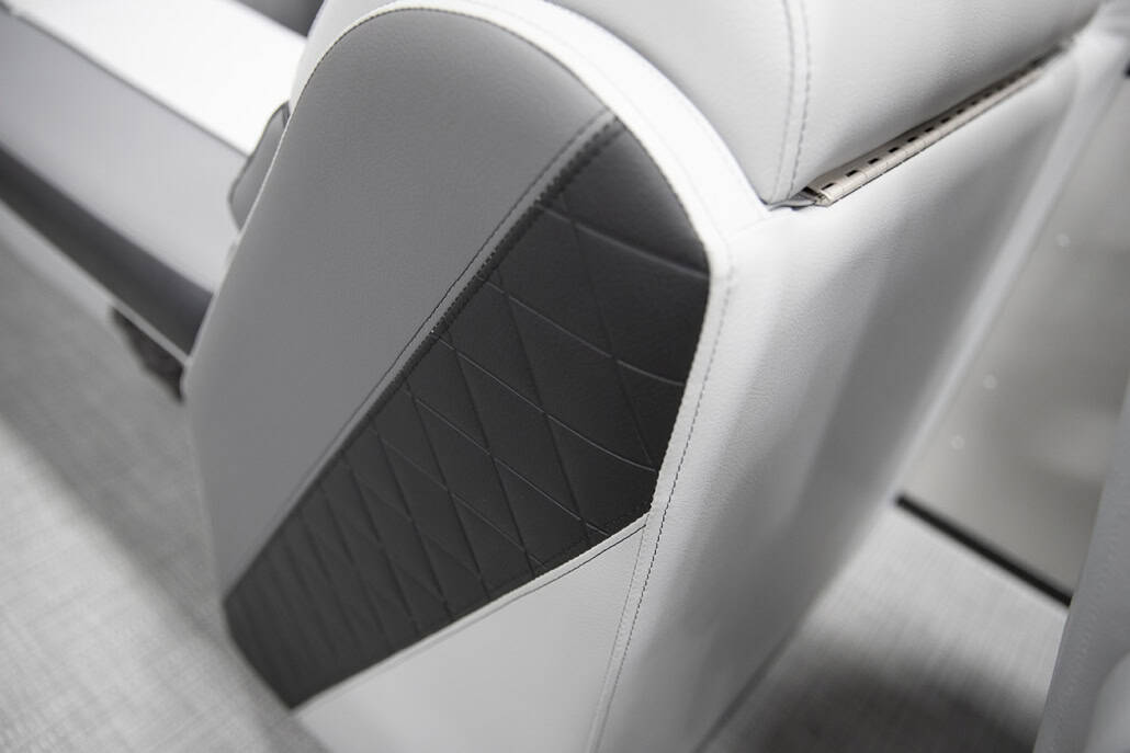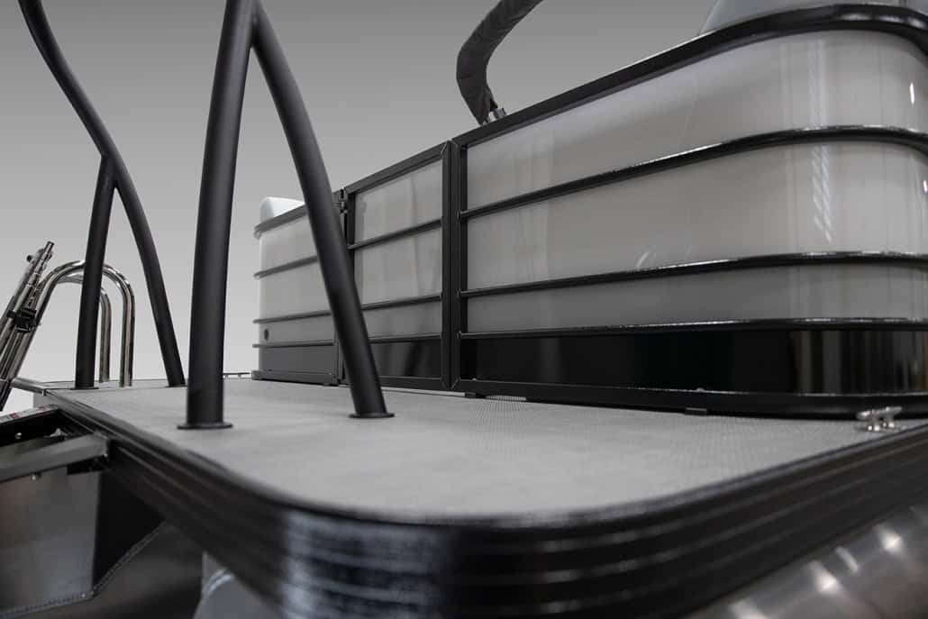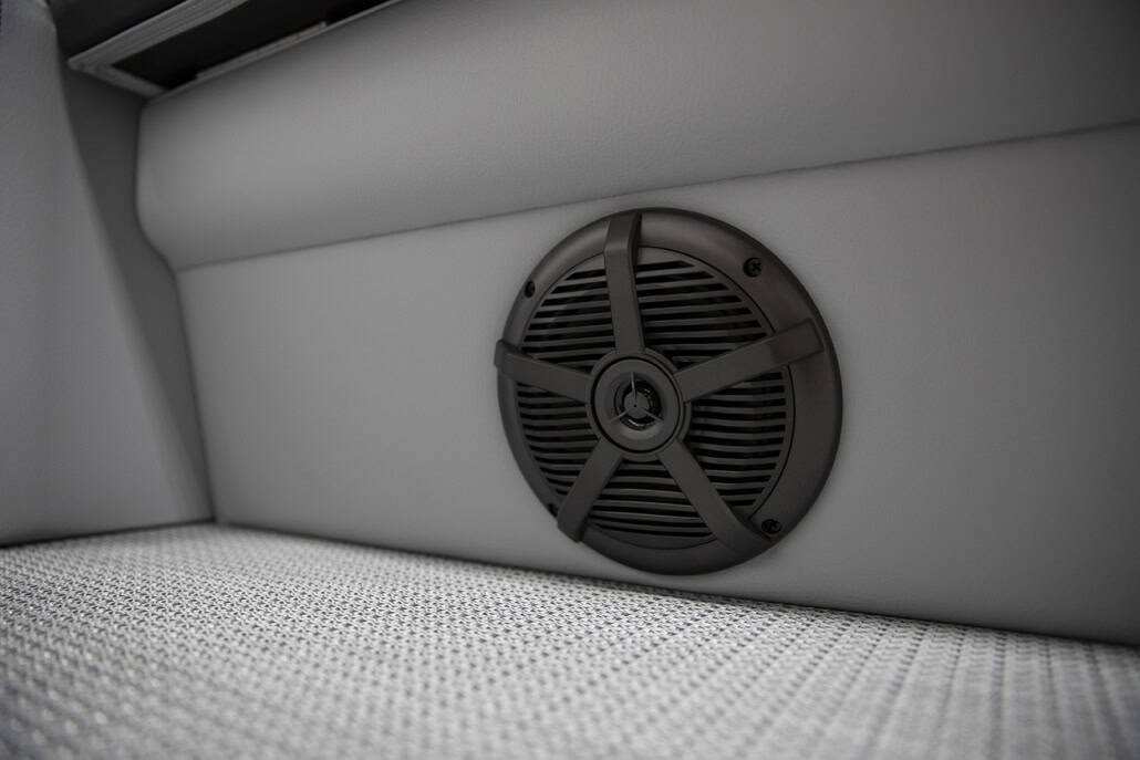 The saying “good things come in threes” hits the bullseye with the Vista Sport. Customers can choose from 20, 22, and 25-foot lengths and black, island green, or navy accent colors. A 25″ Triple-toon Performance Package comes standard and provides greater horsepower and performance. The all-new Vista Sport is ideal for water sports enthusiasts due to the hydraulic steering, tow bar, boarding ladder, and optional Extreme Tower Package. A bundle of luxury standard features will maximize your comfort and entertainment, including reclining chairs and four-corner couch seating in Dolphin Grey, an open storage area under the console for the cooler, a Kicker Bluetooth audio system with four 6.5″ Clarion speakers and an 8″ Bazooka subwoofer, and RGB controller with lighted cupholders at the helm. Captains will appreciate the black powder-coat aluminum and SeaDek-lined raised helm platform and courtesy light when navigating. The Veranda Vista Sport is your affordable and stylish passport to water sports excellence!